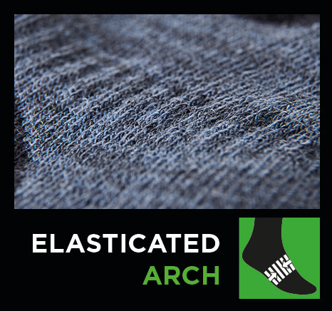 Keeps the sock locked in position. During wear this reduces the possibility of bunching and rucking which could cause irritation or blisters.