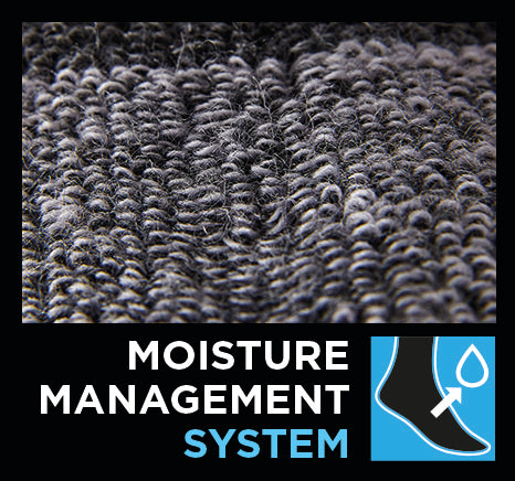 Allows the transfer of moisture away from the surface of the skin to keep feet warm, dry and comfortable